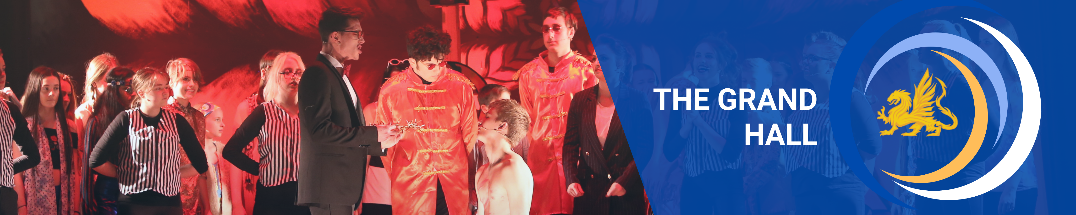 The Grand Hall features a stage and retractable seating area that has the capacity for up to 250 people for presentations and 200 people for performances.